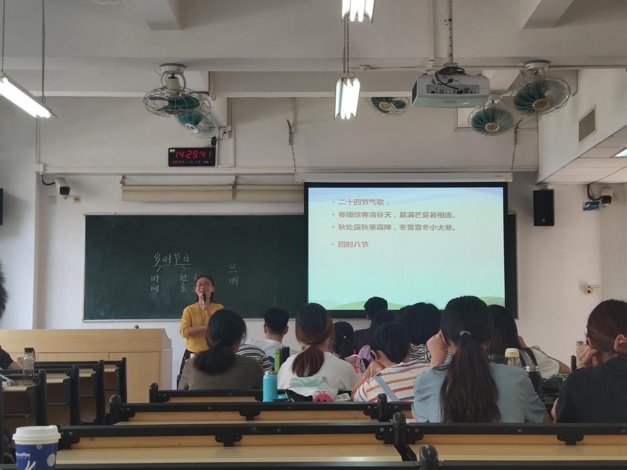 《民俗学概论》是面向历史系18级同学的专业选修课,本次公开课的专题是“中国岁时节日概说:岁时节日的时间节律”。吕慧敏老师从节日的概念入手,介绍了中国传统节日的历史流变过程和构成岁时节日的两大要素。通过日常生活中丰富有趣的节俗现象,引导学生理解传统节日与中国古代历法的关系特点,讲授内容深入浅出,严谨凝练。同学们积极参与互动,课堂气氛活跃。