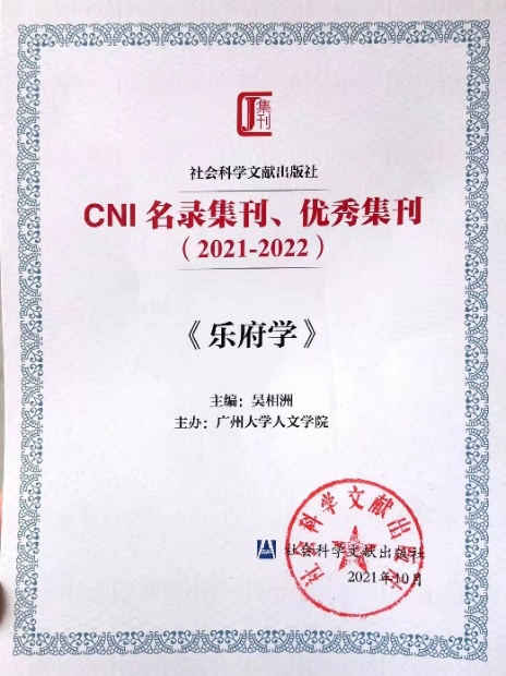 已故吴相洲教授主编的《乐府学》再次入选名录,并荣获优秀集刊称号。