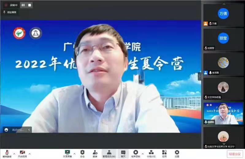 的学科专业。之后,曾大兴教授以《广州的文学景观与诗词写作》为题,进行了学术讲演。曾教授以越秀山、珠江、石门、六榕寺、花田等景观为线索,通过对历史文人相关诗词的解读,揭示了广州深厚的文化底蕴,向营员们展现了广州这座现代化大都市少为人知的另一面。