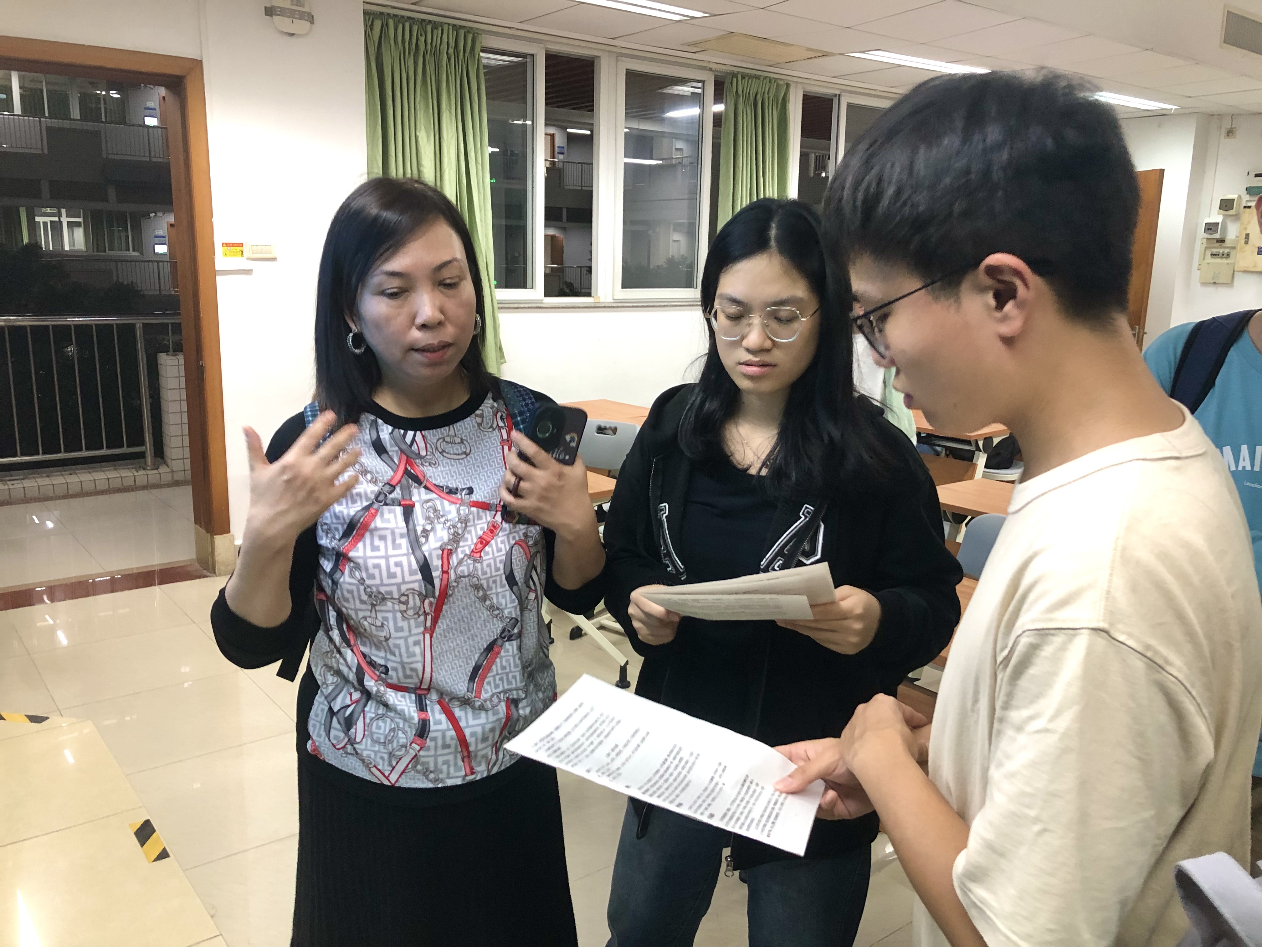同为汉语213班的陈海奋同学说:“第一次上两位老师一起合作的课,这节课不仅让我了解了说课的相关理论知识,还能对说课进行实践和训练。这堂课真的打开了我的新视野,让我不仅仅局限于学生的身份,而是以一个即将要走进社会的新手教师的身份进行学习。”她表示,在王珂老师对比四个新手教师说课稿的不同之后,她也逐步理解了丁老师一开始的说课原则以及要求,并且能够在这四个老师的案例中清楚和明白说课一定要做好统筹全局的准备。在实践训练的过程中,陈海奋同学所在的小组因没能够在短时间内把握住文本的核心,导致说课设计停滞不前,王珂老师建议她们小组可以先找出三篇课文的共同之处,以此为切入点推进91自拍